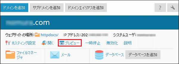 本サービスのコントロールパネルにはプレビュー機能がありますので、ドメインのアクセスするサーバを切り替える前に、DataWebのWebサーバに配置したWebコンテンツが正常に表示がされるか確認をする事ができます。